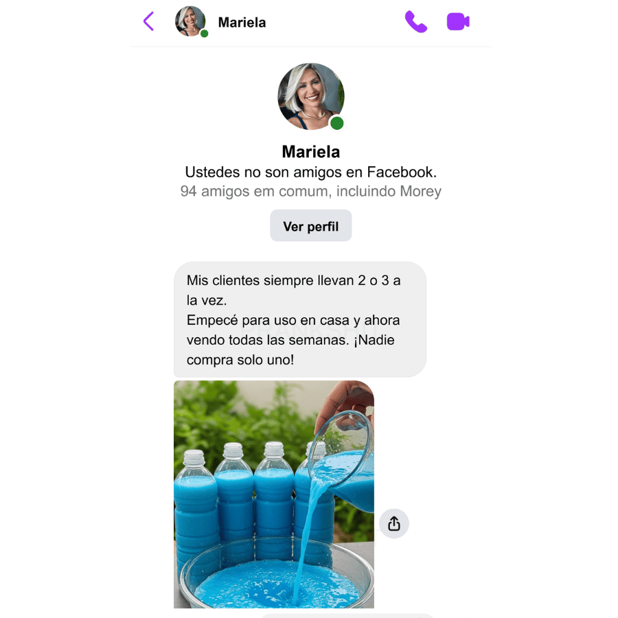 Un método simple para transformar algo que ya haces todos los días —cuidar tu ropa— en ventas fáciles para vecinas, amigas y familiares, que normalmente compran 2, 3 o hasta 5 litros por vez, incluso si nunca has producido nada antes.